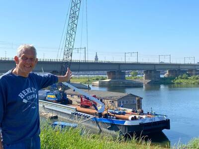 Nadat de botenloods Ondine twee jaar in de de haven van Nijmegen heeft liggen wachten is het maandagochtend 31 mei dan eindelijk zo ver. Hij wordt versleept naar zijn nieuwe plek voor de wal bij rv De Waal.