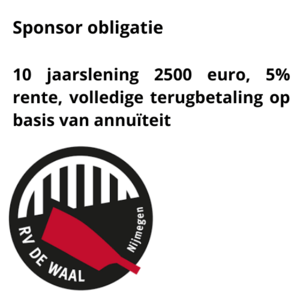 Om het nieuwe boothuis voor onze vereniging te financieren geven we een obligatielening uit en uiteraard staat de vereniging ook open voor schenkingen. Als deelnemer steun je RV De Waal door tijdelijk je geld uit te lenen. Uiteraard krijg je het terug, eventueel met een rendement.